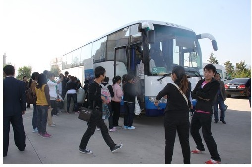 中國教育品牌網訊 近日,北京人文大學150名學生集中在行政樓前集合,等待由聚美優品團購網等單位專車接往單位參加假期勤工助學活動。楊景賀副校長、李艷主任、就業辦謝玉萍主任、劉心磊老師、李春穎老師及相關學院領導、班主任老師均在現場參與指揮協調工作。