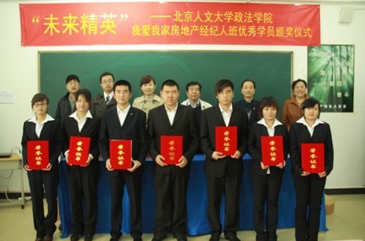 中國教育品牌網訊 近日,北京人文大學政法學院房產經紀人班約40名學生參加了該專業合作單位“我愛我家房地產公司優秀學生獎學金發放儀式”。 北京人文大學副校長傅玉德、政法學院常務副院長焦德祥,我愛我家房地產公司人才發展中心總監杜玲、回龍觀區業務總監劉福波,以及政法學院教管科長范俊、學管科長王艷,公司招聘專員熊宗晶,企劃專員吳砷出席儀式。