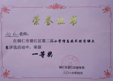 中國教育品牌網(wǎng)訊 2016年4月26日—29日,碧江區(qū)小學(xué)信息技術(shù)優(yōu)質(zhì)課比賽在第十八小學(xué)順利進行,來自城區(qū)各小學(xué)、鄉(xiāng)鎮(zhèn)中心校共24位老師參加了比賽,銅仁市第三小學(xué)向紅老師代表學(xué)校參賽榮獲一等獎的優(yōu)異成績,并將代表碧江區(qū)參加銅仁市小學(xué)信息技術(shù)優(yōu)質(zhì)課比賽。