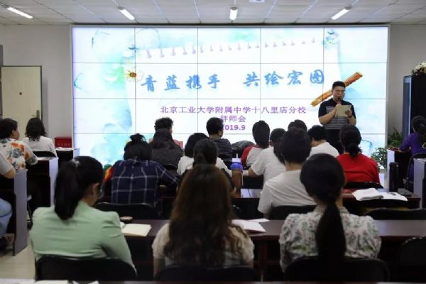 此次“青藍攜手共繪宏圖”拜師會的舉行,既激起了青年教師們濃厚的學習興趣,又彰顯了北京工業大學附屬中學十八里店分校老教師們不吝賜教的名師風范。相信不久之后,“青藍攜手共繪宏圖”工程定會碩果累累,為學生的健康成長保駕護航。