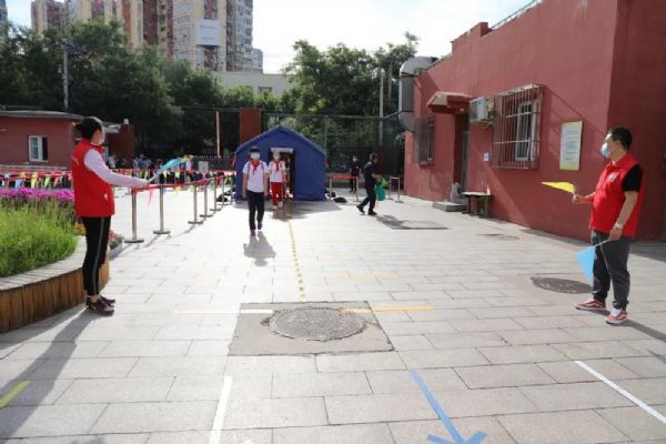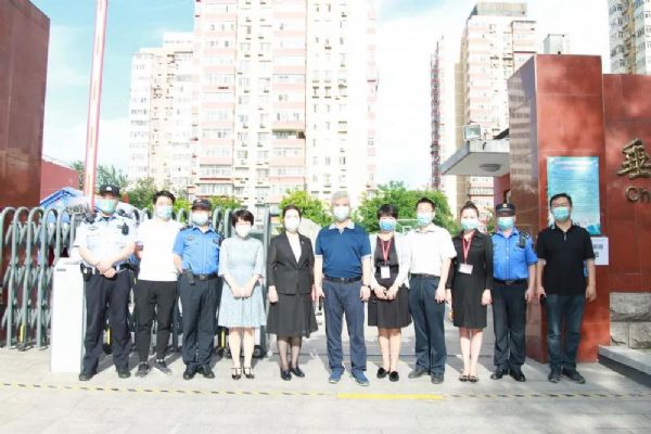 6月1日兒童節,垂楊柳中心小學六年級學生迎著初夏的暖風重返校園。潘家園街道辦事處工委書記張貴林、副主任周廣軍、街道城管大隊長付占鑫、副隊長熊琳琳、綜治辦主任趙學軍、建設辦公室文教事務副科長李奇、松榆西里社區黨委書記李秀穩、主任劉菁以及教委科室聯絡員、學校責任督學、疾控中心駐校醫生、派出所干警一同來到學校協助組織返校復課。