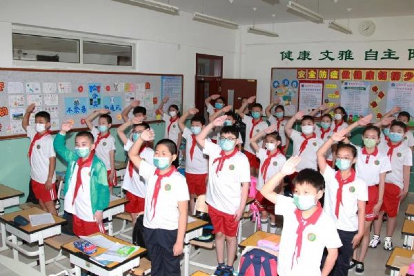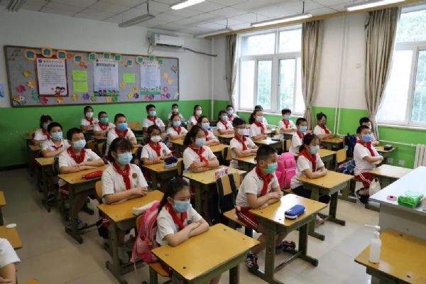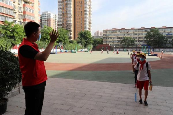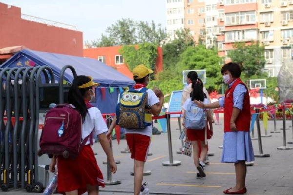 繼6月1日北京市六年級學生返校復課之后,6月8日垂楊柳中心小學四五年級學生,穿著整齊的校服也回到了向往已久的校園。