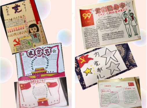在這個(gè)特殊的日子里,同學(xué)們學(xué)習(xí)調(diào)研“七一”建黨節(jié)的來(lái)歷,網(wǎng)絡(luò)隊(duì)課講述了中國(guó)共產(chǎn)黨99年的奮斗歷程以及新時(shí)代黨的新任務(wù)新使命,班主任耿瑞軒老師勉勵(lì)同學(xué)們繼承光榮傳統(tǒng),勤奮學(xué)習(xí),初心向黨,愛(ài)國(guó)愛(ài)人民,做中國(guó)特色社會(huì)主義事業(yè)接班人。聽(tīng)了中國(guó)共產(chǎn)黨的光榮歷史,孩子們被深深的感動(dòng)著,他們用手中的畫(huà)筆,畫(huà)出一幅幅生動(dòng)的手抄報(bào),圖文結(jié)合畫(huà)黨史。