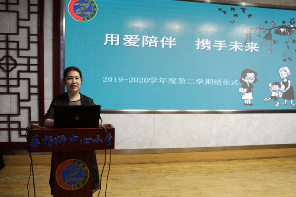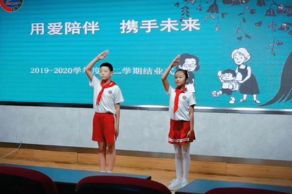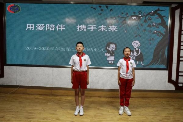 “用愛陪伴 攜手未來”2019--2020學年度第二學期結業式隨著小主持人高高揚起的隊禮結束。