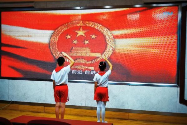 隨著兩位小主持人的出場,“用愛陪伴 攜手未來”2019—2020學年度第二學期結業式正式開始。線上和線下的老師、學生和家長一同參加了升旗儀式,莊嚴嘹亮的國歌響徹云端 。