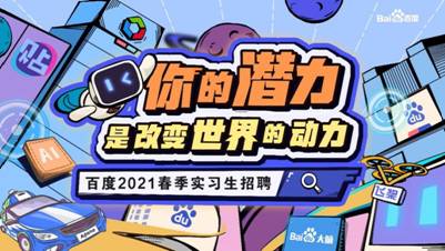 百度2021春季實習生招聘正在火熱進行中,百度誠邀每一位擁有科技夢想和強國精神的優秀學子一起加入,與百度一起共同成長,彼此成就,為社會創造價值。