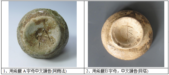 先秦華夏(原始青瓷)字母款與希臘字母結構相同對照圖表譯中文讀音如下:圖15