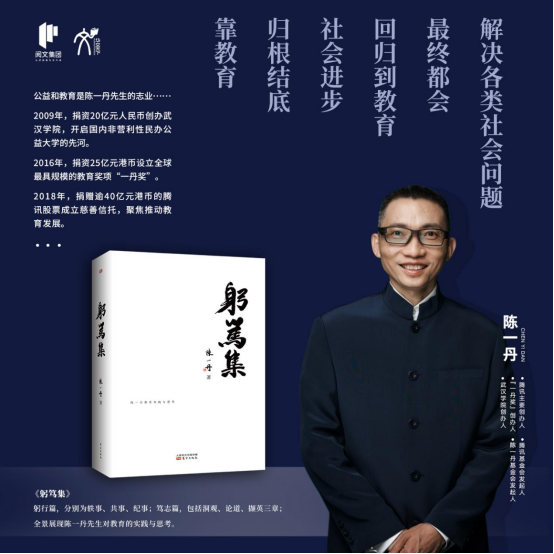 伴隨基金會(huì)工作的推進(jìn),陳一丹也在逐步推動(dòng)教育事業(yè)。2009年,陳一丹捐資20億元人民幣創(chuàng)辦武漢學(xué)院,開啟國內(nèi)非營利性民辦公益大學(xué)的先河;2016年,捐資25億元港幣設(shè)立全球最具規(guī)模的教育獎(jiǎng)項(xiàng)“一丹獎(jiǎng)”;2018年,捐贈(zèng)逾40億元港幣的騰訊股票成立慈善信托,聚焦推動(dòng)教育發(fā)展。公益和教育成為了陳一丹先生的志業(yè)……