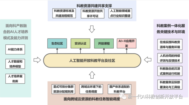該項(xiàng)目聚焦新一代人工智能大規(guī)模在線科研社區(qū)發(fā)展、人才培養(yǎng)和產(chǎn)教生態(tài)培育等重大需求,以建設(shè)大規(guī)模人工智能開放科教平臺(tái)及生態(tài)社區(qū)、面向高校和企業(yè)開展大規(guī)模應(yīng)用示范為目標(biāo),集中國內(nèi)人工智能科教領(lǐng)域產(chǎn)學(xué)研優(yōu)勢力量——包括浙江大學(xué)、上海交通大學(xué)、西安交通大學(xué)、國防科技大學(xué)、北京航空航天大學(xué)、華中師范大學(xué)等國內(nèi)頂尖大學(xué),以及華為、百度、智擎科技、華院計(jì)算等行業(yè)領(lǐng)軍企業(yè),共同完成五大核心課題。