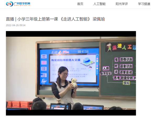 此前,教育部教育信息化戰略研究基地(北京)主任黃榮懷表示:廣州市的開展的中小學人工智能課程教學實驗,從教材編寫、教學設計、課時安排、教材資源等方面進行系列創新,按照教學與評價——教學資源——教學環境——教研活動——教師培訓五個措施實施開展人工智能教育,已形成了有效閉環,可成為全國的典范。