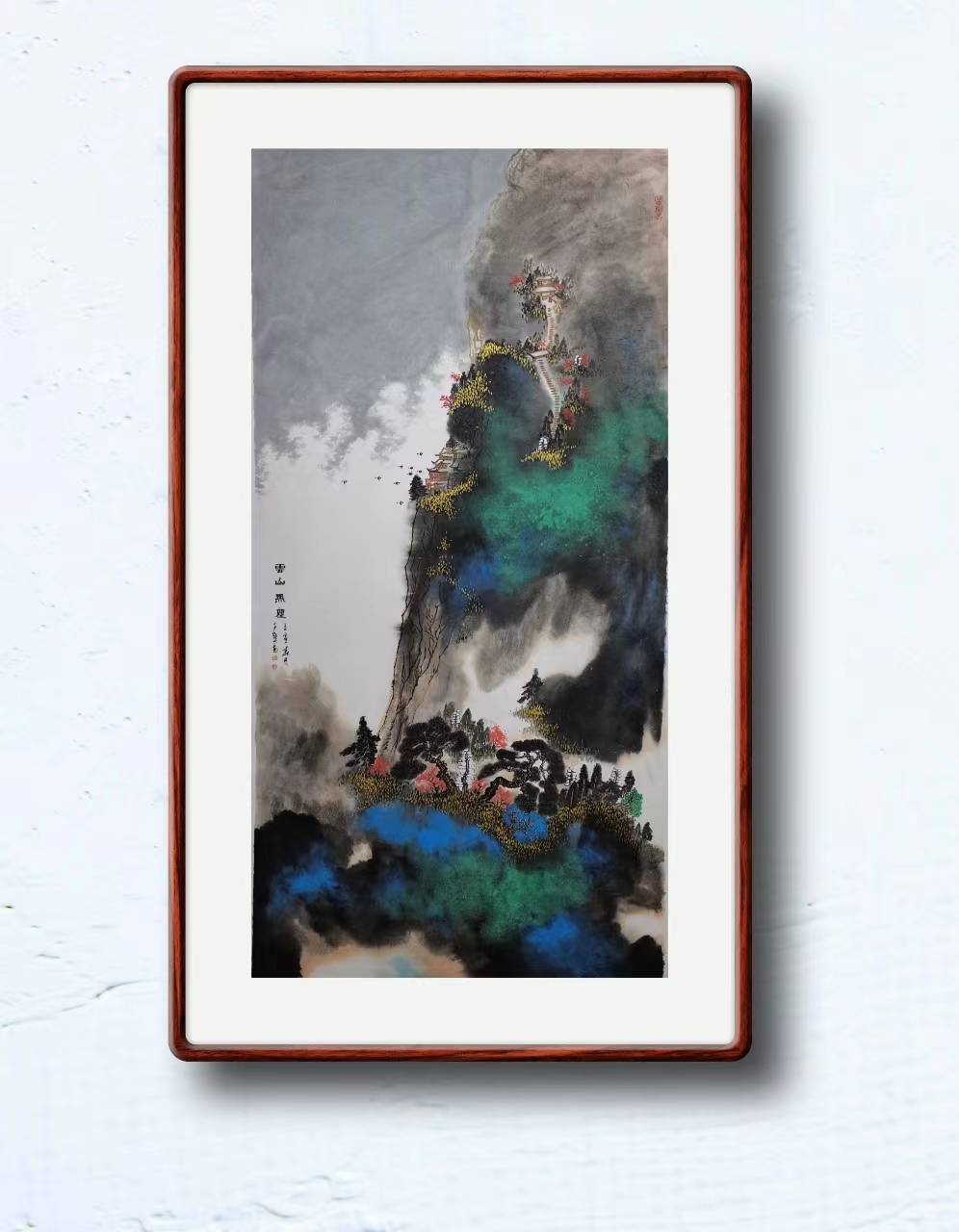 5.中國傳媒大學博士生導師,金妹教授評論:子默在繼承傳統青綠色彩裝飾性的同時,把它與筆墨相結合,實現了色彩的當代轉換,創新了山水畫的表現。他的繪畫呈現了畫家一種嚴謹、精致的文化態度。