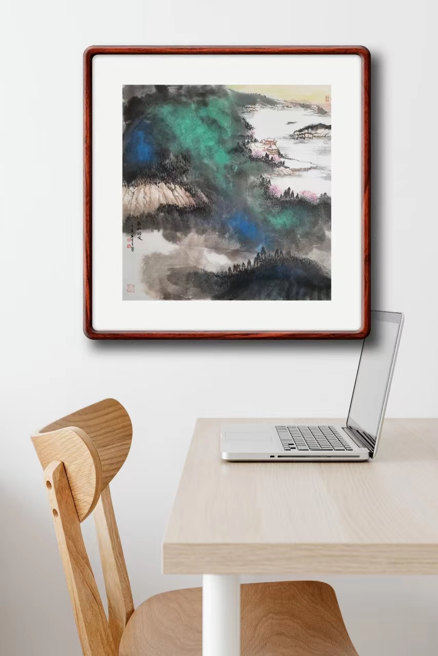 11.西安美院教授,原西安美院深圳分院院長黃玲玲女士評價:子默的繪畫比較全面,山水,人物,花鳥均有涉獵,尤其山水繪畫,用筆精細而不碎,用色瑰麗而不燥,明麗中見文人氣韻。近期的潑墨潑彩山水,峰巒挺秀中彌漫煙霞,云光翠影里充滿含蓄,宜靜宜動,充滿魅力。