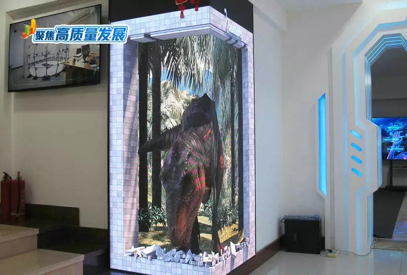 這只是愛威爾科技利用視覺偏差制造的“裸眼3d”效果,也是愛威爾科技副總經理馬宏寧口中“入門級”的虛擬現實技術。“除了公司大廳的‘裸眼3d’恐龍外,用戶可以戴上VR/AR眼鏡等可穿戴設備,更直觀感受虛擬世界中的鮮活畫面,也可以在虛擬世界中,與數字人交流互動。”馬宏寧邊介紹邊熟練地拿起設備為到訪人員展示相關操作。