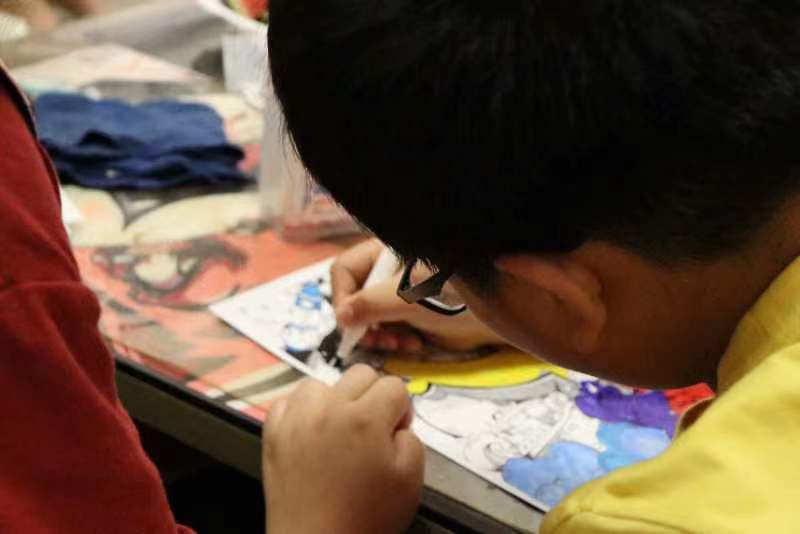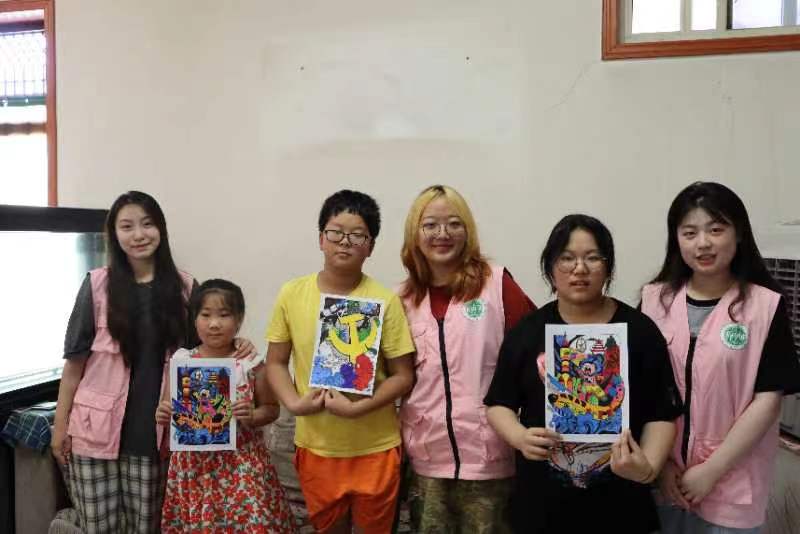 在杜曲街道,實踐團隊成員開展“大手拉小手共慶七一,代代相傳續紅色基因”系列活動——“革命故事聲聲入耳·聽音繪”音樂團輔黨史科普活動、百年血脈躍然紙上·七彩繪牽起你的手彩繪黨史活動,為鄉村困境兒童開展音樂團輔、黨史科普、黨的二十大精神繪畫等活動,將美育和思政課融合,為困境兒童打造以紅色為底色的“七彩假期”。