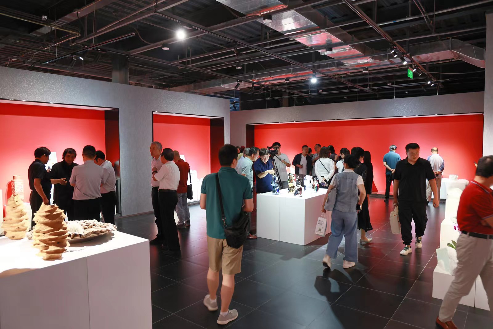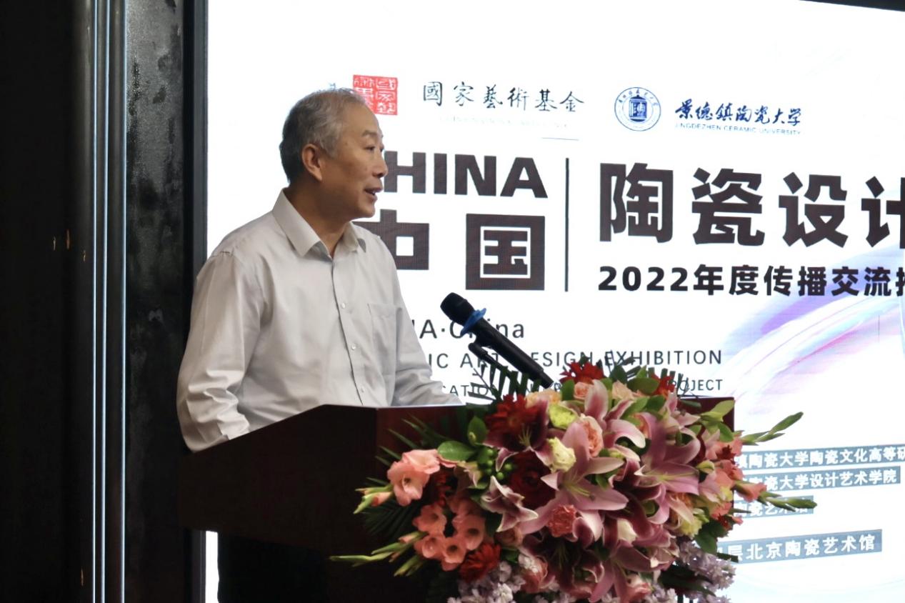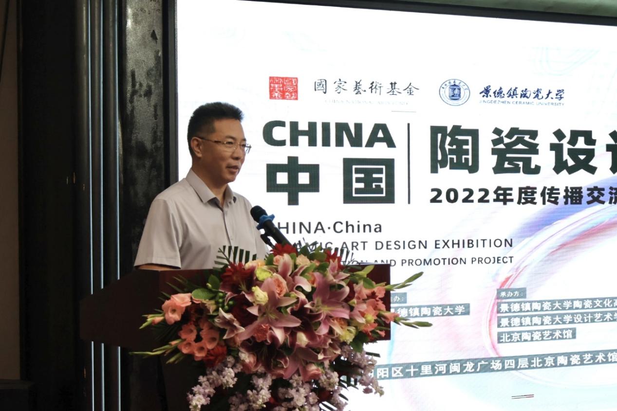 9月12日,由國家藝術基金資助,景德鎮陶瓷大學主辦,景德鎮陶瓷大學陶瓷文化高等研究院、景德鎮陶瓷大學設計藝術學院、北京陶瓷藝術館承辦的國家藝術基金2022年度傳播交流推廣資助項目——“CHINA·中國陶瓷設計藝術展”(北京站),在北京市朝陽區十里河閩龍廣場四層北京陶瓷藝術館開幕。上午10點半,在熱烈的掌聲中展覽開幕式拉開了帷幕,開幕式暨研討會由環球直播平臺全程直播。展覽開幕式有五項議程,第一項議程由“CHINA·中國陶瓷設計藝術展”巡回展項目負責人葉建新教授介紹展覽情況,第二項由承辦方北京陶瓷藝術館館長陳美霞致辭,第三項由中國書畫家聯誼會主席舒乃仁致辭,第四項議程由中國工藝美術大師、北京工藝美術協會副會長陳烈漢致辭,最后一項議程由民盟北京市委常委、歷史文化委員會主任、民盟中央文化委員會副主任宋慰祖講話并宣布展覽開幕。本次展覽開幕式由項目策劃閻飛副教授主持。開幕式結束后,領導和嘉賓們參觀了展覽。