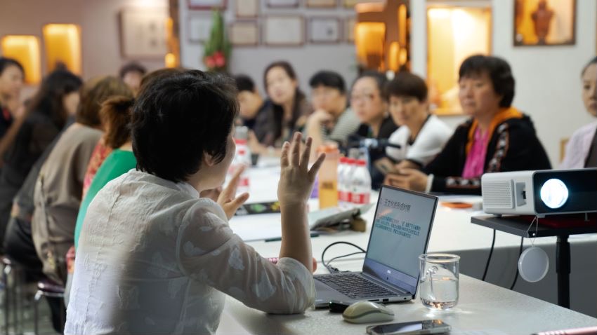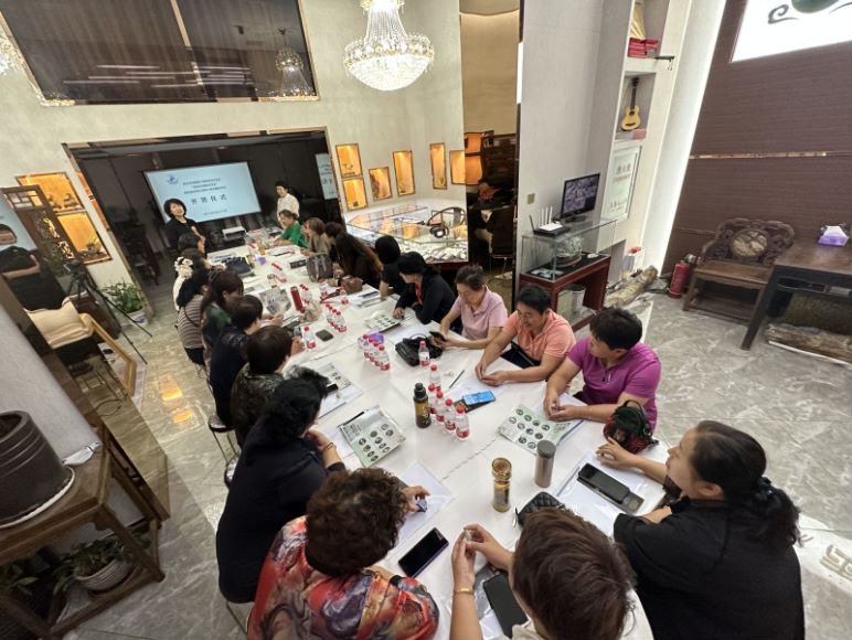 徜徉在在文化與技藝的海洋中,學員們學習熱情高漲,積極與講師互動,學習氛圍熱烈且濃厚。講師陳素芳憑借著深厚的玉雕文化積淀和高超的雕刻技法,獲得了學員的欽佩與喜愛,授課效果顯著。