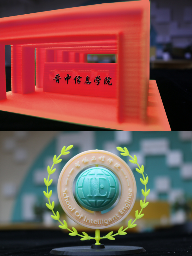同時還有Creator機器人社自主裝配的智能寫字機首次亮相,同學們紛紛零距離接觸,感受科技魅力。運用3D打印技術完成的六扇門模型以及智能工程學院院徽等精美的3D打印成品,賦予了同學們強烈的視覺震撼,在場的每個人都沉浸在獨屬于創造的世界,體會3D打印“妙筆生花”的別樣趣味。