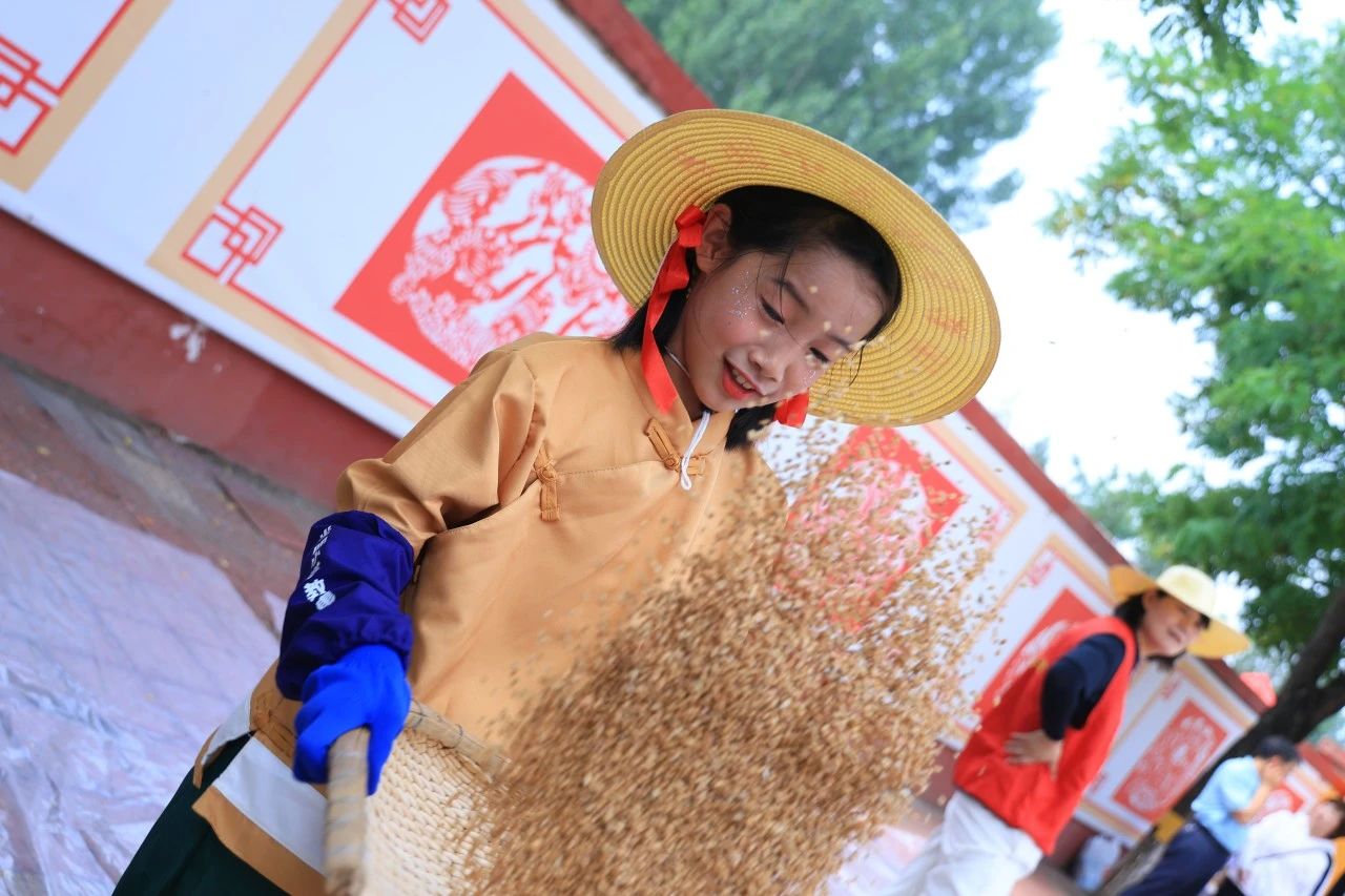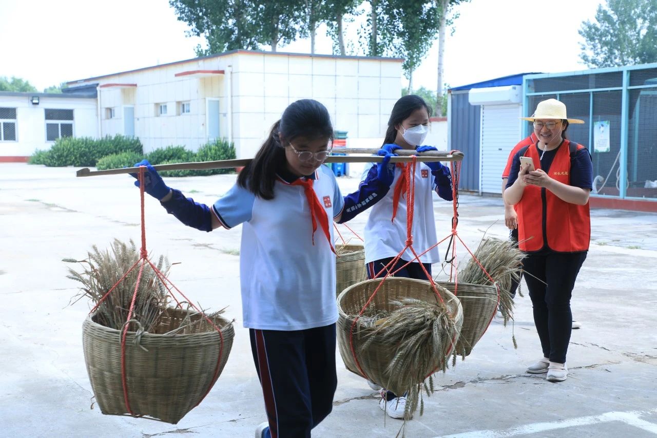 學(xué)校精心設(shè)計(jì)了收麥子、運(yùn)麥子、敲麥子、篩麥子等環(huán)節(jié),同學(xué)們從開始的不知所措、配合不周,到熟練割麥、搬運(yùn)有序。只見他們有的躬身割麥,有的彎腰撿穗,有的歸攏麥秸,有的搬運(yùn)堆積,有的敲打麥穗,有的手工篩麥。揮灑的汗水、肆意的笑顏、勤勞的背影讓這一捆捆的麥穗閃耀著勞動(dòng)育人的光彩。