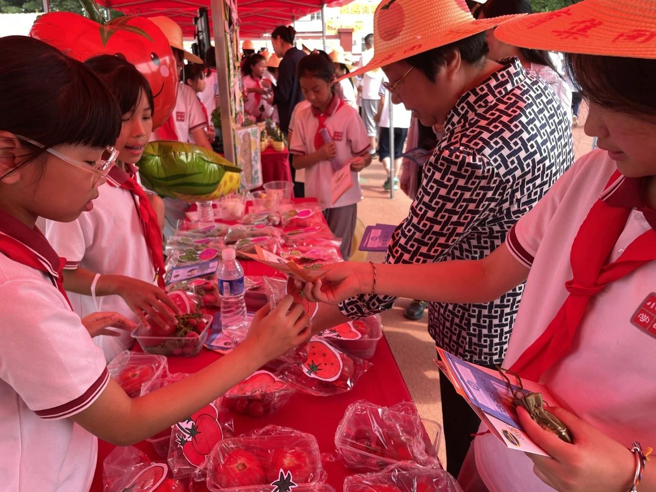 農(nóng)業(yè)大集,這一古老傳統(tǒng)的商貿(mào)形式,走進(jìn)校園煥發(fā)“新生機(jī)”。學(xué)生們紛紛曬出“看家本領(lǐng)”,將自己的項(xiàng)目化學(xué)習(xí)成果搬上展臺(tái),展銷蔬菜、手工藝品、親自孵化的小雞、親手制作的美食……展會(huì)統(tǒng)一發(fā)放“陽(yáng)光幣”,讓師生們能夠互相品嘗到不同項(xiàng)目組的農(nóng)業(yè)勞動(dòng)成果,互相交流學(xué)習(xí)。