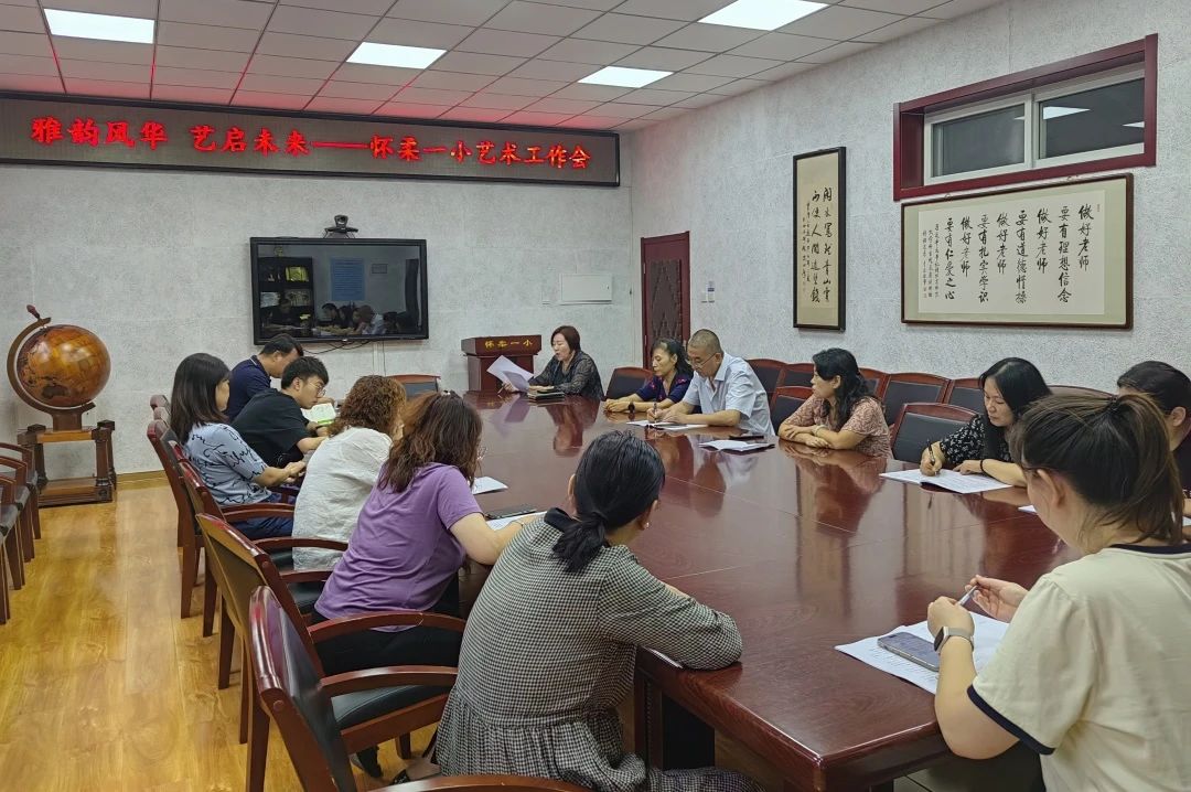 音樂(lè)組和藝術(shù)組代表分別介紹了學(xué)期工作計(jì)劃、社團(tuán)安排、重點(diǎn)項(xiàng)目打造以及中秋“如雁來(lái)?xiàng)┣镩啎闭w設(shè)計(jì)思路。