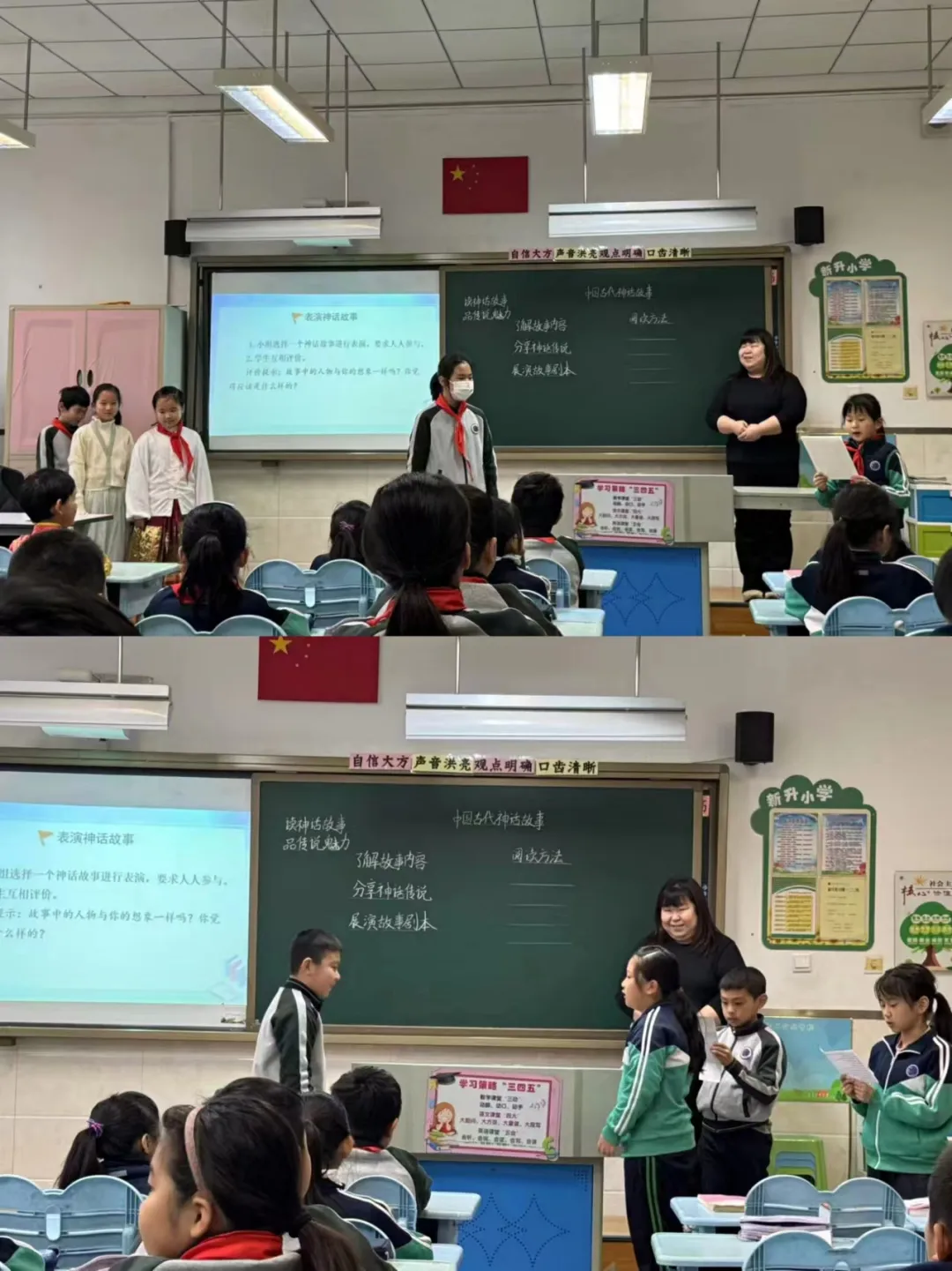 四年級師生共同閱讀了《中國古代神話故事》一書。交流中,同學們通過自己生動地演繹,將一幕幕神奇的故事搬上舞臺,展示在大家面前。共同體會古人對天地萬物的美好想象和樸素純真的愿望,感受著古人留給我們的寶貴文化遺產。