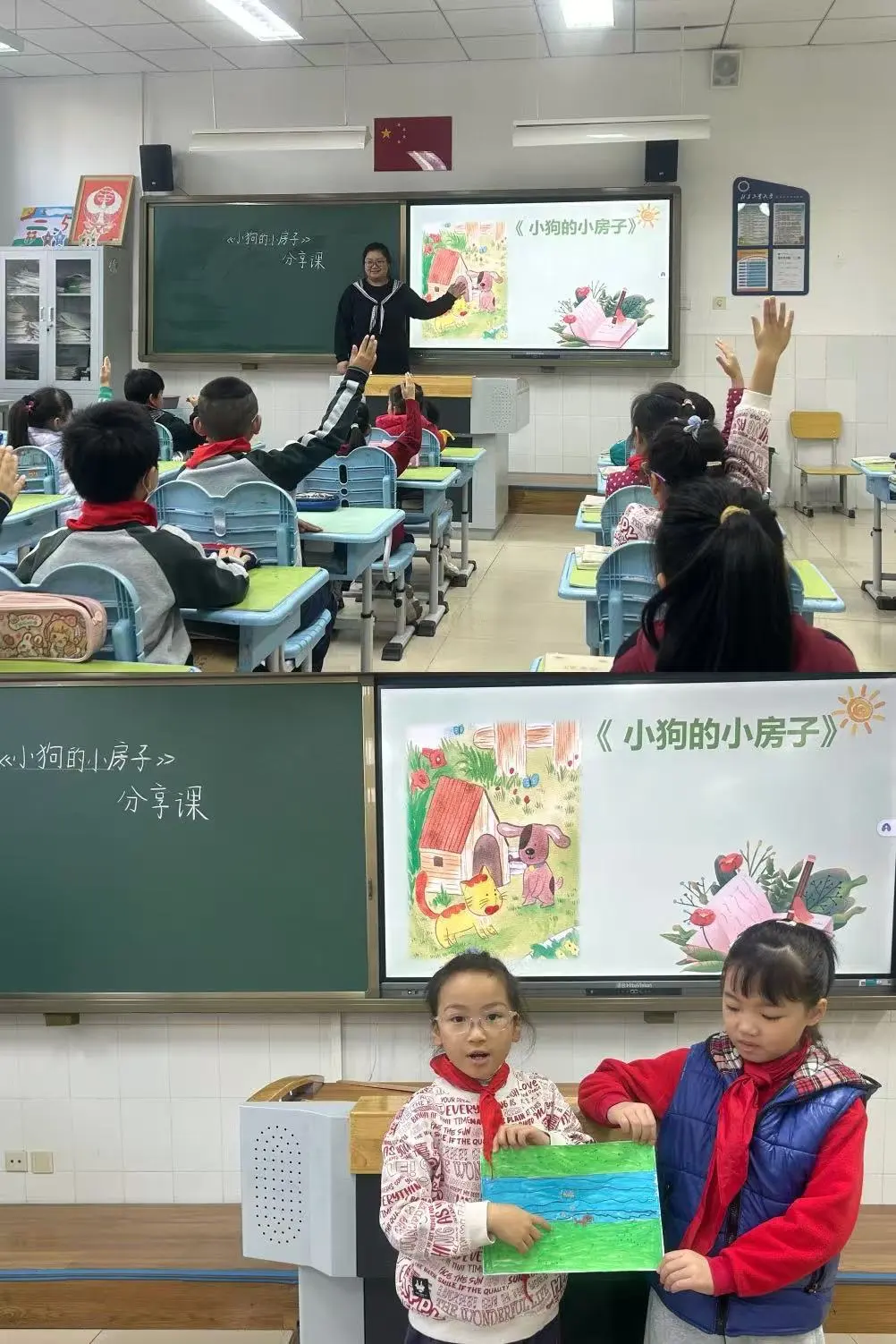 二年級語文教師和同學們一同走進童話故事,共同閱讀了《小狗的小房子》這本書。分享課上,同學們暢所欲言,不僅分享了積累的好詞佳句,還充分表達了自己對小貓和小狗的看法,在教師的引領下,以小貓和小狗的行為為參照,學會了朋友間該如何相處,體會到友情的可貴。