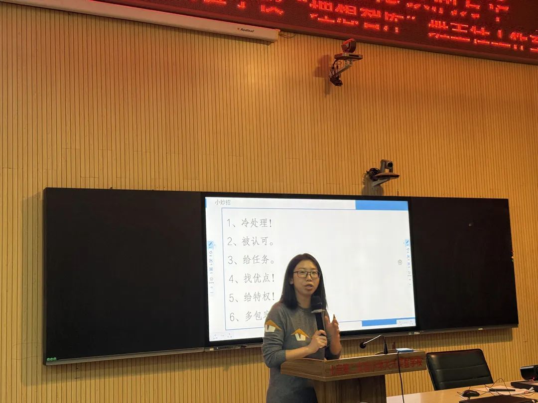 會上,尹博然老師和陳海燕老師率先登臺,分享她們在特需生轉化與家校溝通方面的珍貴經驗。兩位老師扎根教育一線,用心血澆灌每一株幼苗,以生動鮮活的案例與真摯深刻的感悟,為參會者呈現了特需生轉化的精妙策略以及家校溝通的高超藝術,贏得全場熱烈共鳴與由衷欽佩,為班主任們提供了極具實操性與啟發性的寶貴借鑒。
