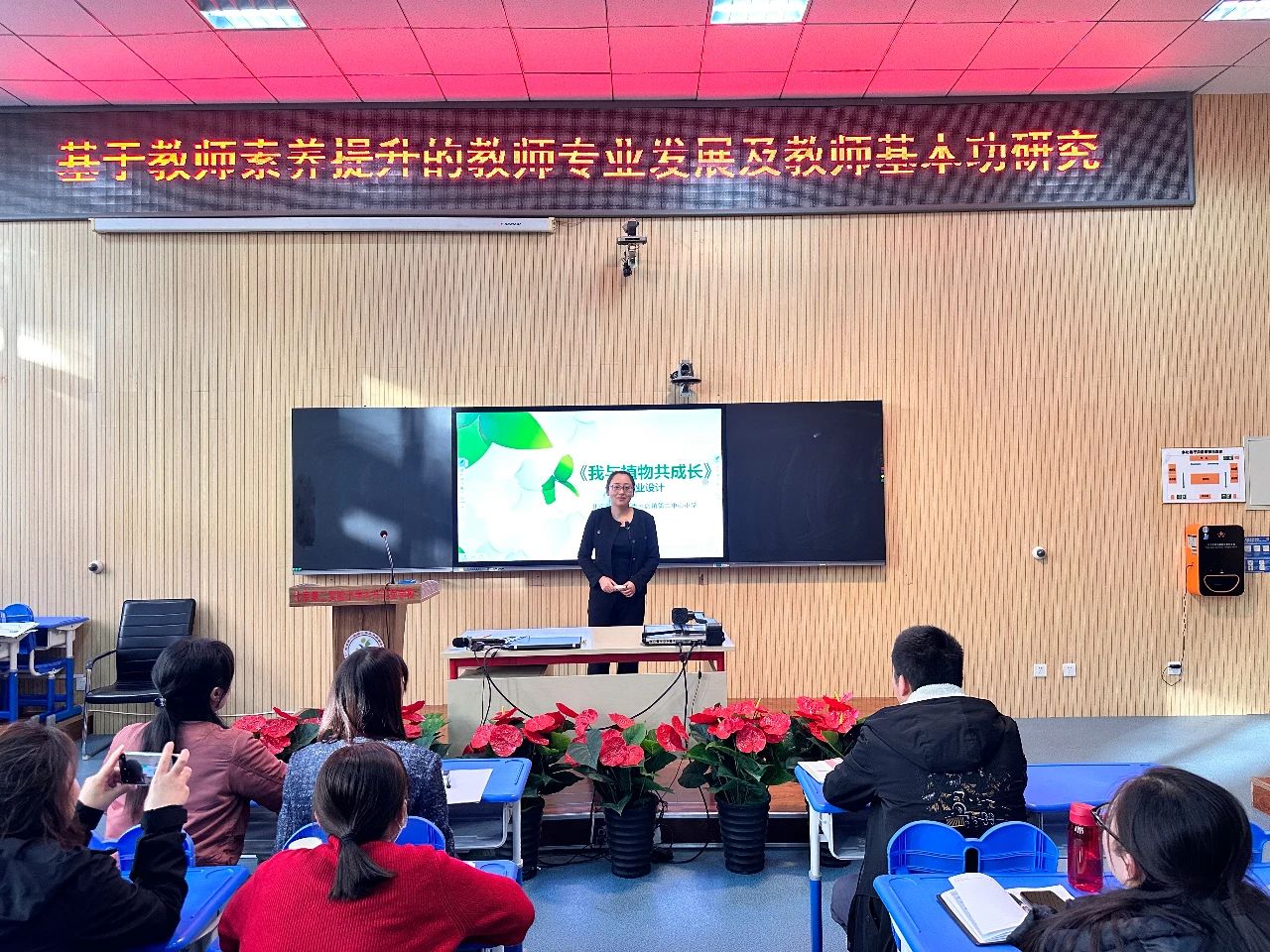 青云店鎮第二中心小學的沈萍老師進行四年級《我與植物共成長》作業設計展示。以“植物”為紐帶,通過美術、科學、語文跨學科整合美術單元作業,學科間建立聯系,通過基礎型作業、體驗型作業、探究型作業等進行設計與實施,讓學生有能力去解決問題,形成多樣化成果,提升學生素養。