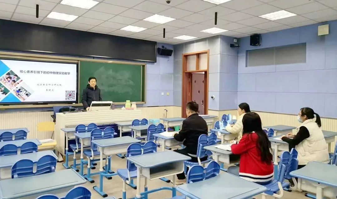 隨著教育改革的深入,核心素養(yǎng)的培養(yǎng)已成為物理教學(xué)的重要目標(biāo)。為了進(jìn)一步提升物理教師的實(shí)驗(yàn)教學(xué)設(shè)計(jì)能力,確保實(shí)驗(yàn)教學(xué)能夠有效促進(jìn)學(xué)生核心素養(yǎng)的發(fā)展,2024年12月13日上午,我校邀請(qǐng)了北京教科院基礎(chǔ)教育教學(xué)研究中心物理室主任秦曉文老師為物理組的老師們開(kāi)展了一場(chǎng)以“核心素養(yǎng)引領(lǐng)下的中學(xué)物理實(shí)驗(yàn)教學(xué)設(shè)計(jì)”為主題的培訓(xùn)活動(dòng)。活動(dòng)由理化生教研組長(zhǎng)高福營(yíng)老師主持,全體物理老師參加了此次培訓(xùn)。