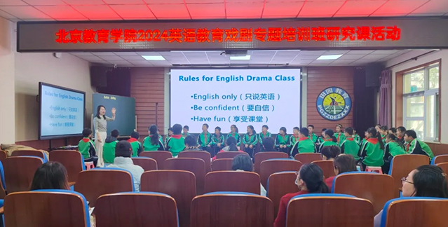 近日,北京教育學院2024英語教育戲劇專題培訓班研究課第一次活動在龐二小成功舉辦。北京教育學院教育戲劇專家柯丹老師、郄利芹老師、學校段金宇副校長、來自八個區的老師們共同觀摩了本次研究課。