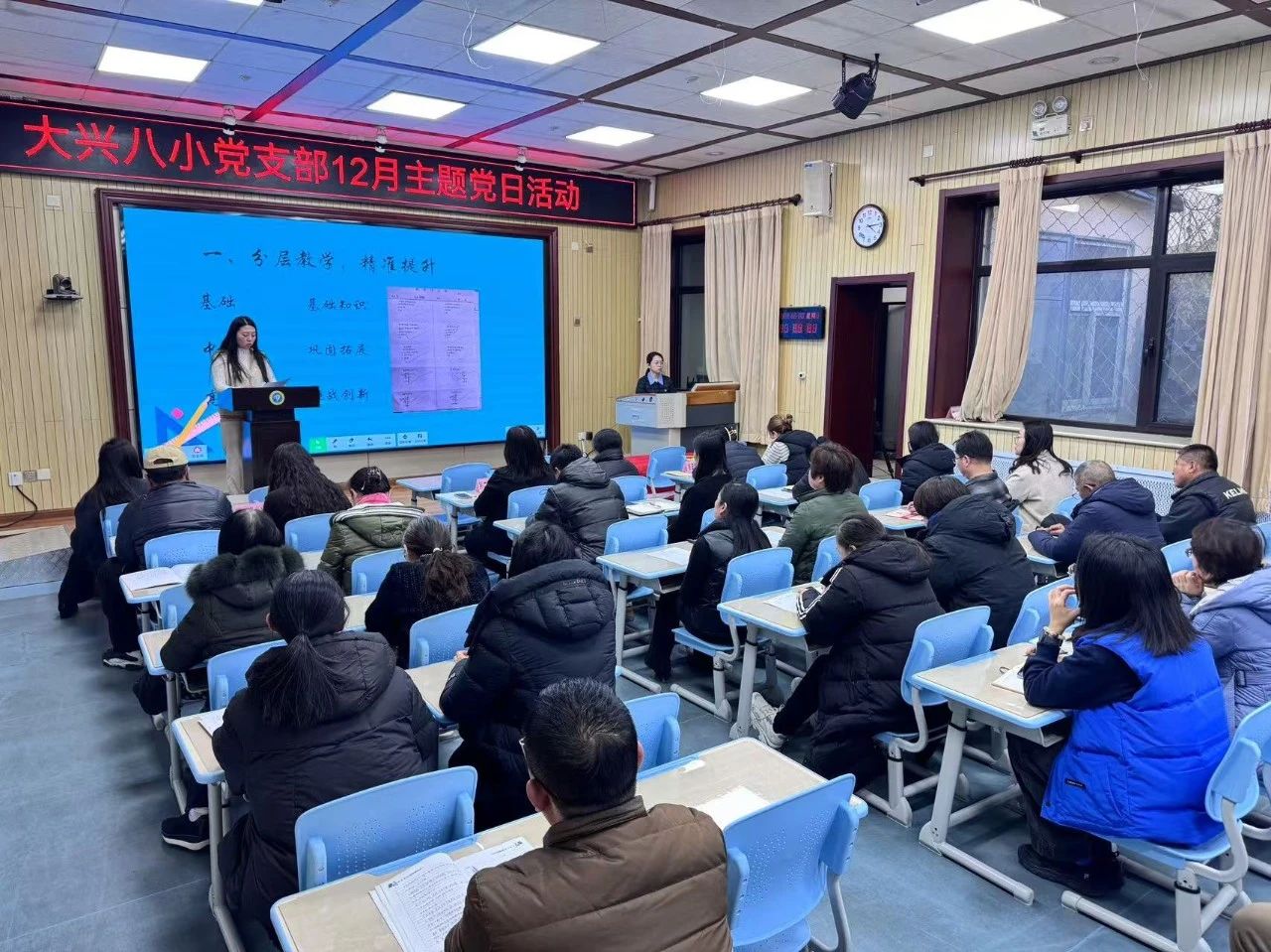 提升教學質量始終是學校發展的核心要務。教導處主任秦淑煥依據實際工作情況,向全體黨員分享了提質增效的具體舉措。學校的全面發展離不開黨組織的堅強引領,我校秉持 “紅色引擎賦能綠色發展” 的黨建品牌理念,全力推動學校教學工作實現高質量發展并彰顯特色,科研主任劉寶蓮匯報了《大興八小碳中和校本課程開發與實施研究》。青年黨員教師代表張蕊分享了其在課堂教學中的創新實踐經驗與成果。