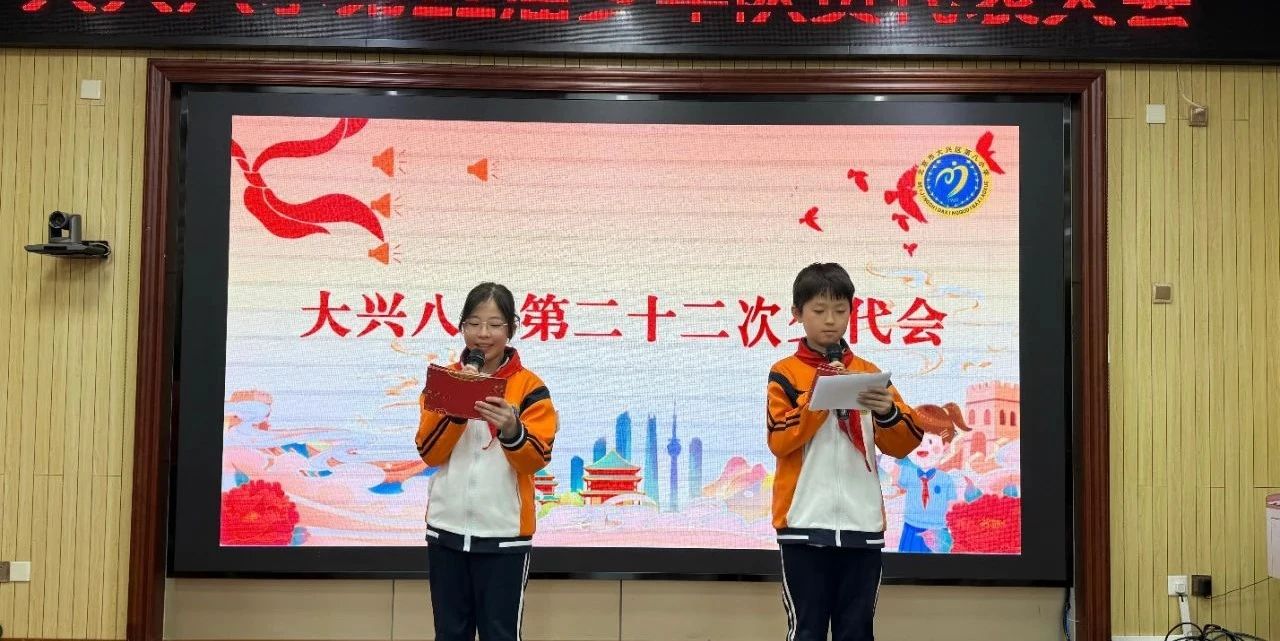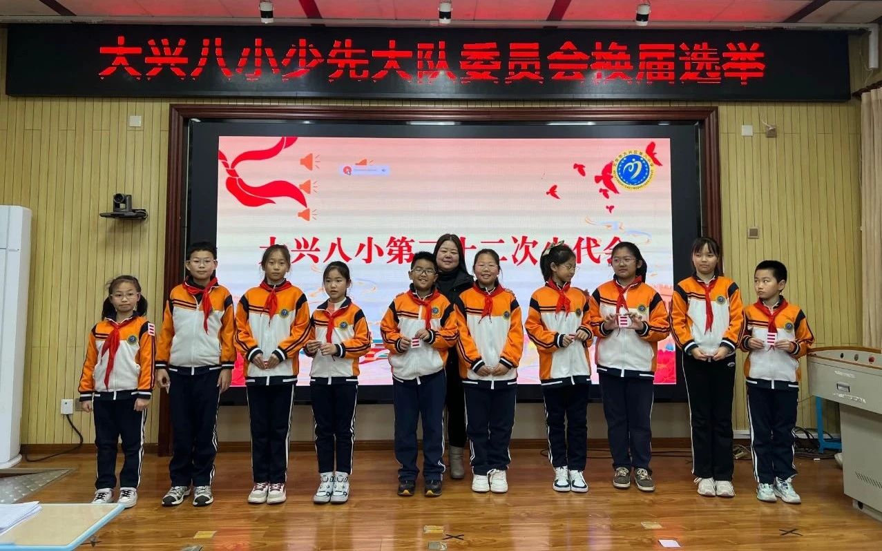 2024年12月20日中午,大興八小舉行了 2024 年大興八小第二十二次少代會暨大隊委換屆選舉活動,現場氣氛熱烈,活動在莊嚴的氛圍中開啟,全體師生起立,出隊旗儀式正式開始。伴隨著激昂的出旗曲,護旗手們邁著整齊有力的步伐,護送隊旗前行。全體少先隊員高唱《中國少年先鋒隊隊歌》,歌聲氣勢磅礴,響徹校園。