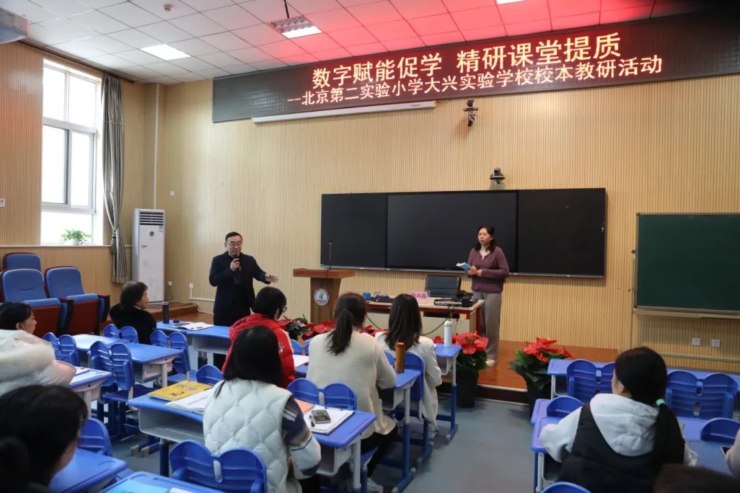 2023年5月教育部印發《基礎教育課程教學改革深化行動方案》,在重點任務“專業支撐與數字賦能行動”中提出推進數字化賦能教學質量提升,要求構建數字化背景下的新型教與學模式,助力提高教學效率和質量。為深入貫徹基礎教育改革方案,2024年11月28日上午,北京第二實驗小學大興實驗學校開展了以“數字賦能促學,精研課堂提質”為主題的校本教研暨“青年教研員成長營”送教助研活動,參加本次活動的有大興區小學數學教研員孫向晶老師、成長營學員、北京第二實驗小學大興實驗學校副校長姚林濤、數學學科指導專家王明蘭老師及全體數學教師。