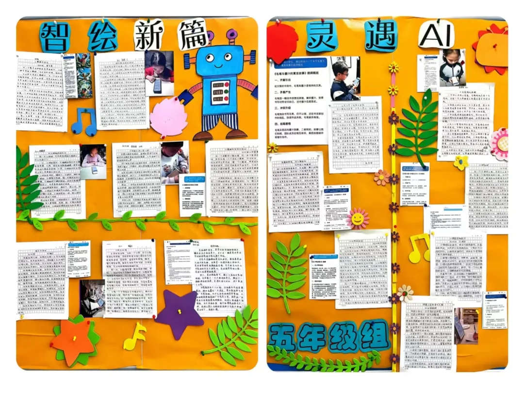 活動前期,同學們在老師的帶領下學習了如何與AI協作,運用科技手段來實現自己的創意想法。一二年級的同學們利用AI技術將稚嫩的話語轉變成朗朗上口的童謠。三四年級的同學為 AI 提供主題、情感基調以及一些關鍵意象,引導其生成優美動人的詩歌。五六年級的同學設定故事背景、人物角色、情節線索等故事框架,由AI在細節上進行豐富和完善。隨后將AI生成的作品經過修改、潤色,并加入個性化的元素后,一幅幅富有創意和表現力的作品便呈現在了大家眼前。