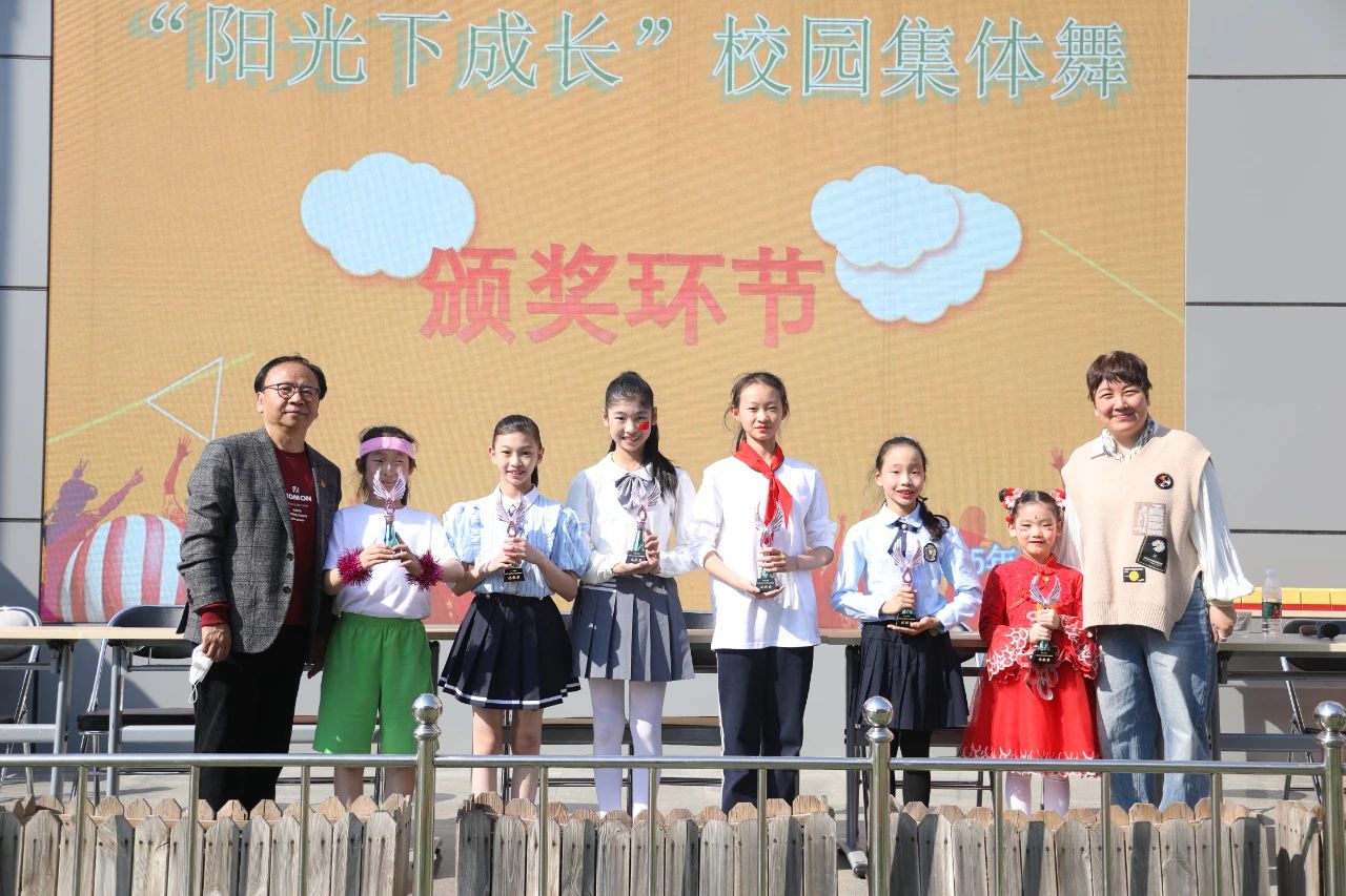 最終19個班級舞蹈中六1班、二1班、五3班取得了一、二、三等獎的優異成績,王鳳嶺校長為獲獎班級頒獎并合影留念。