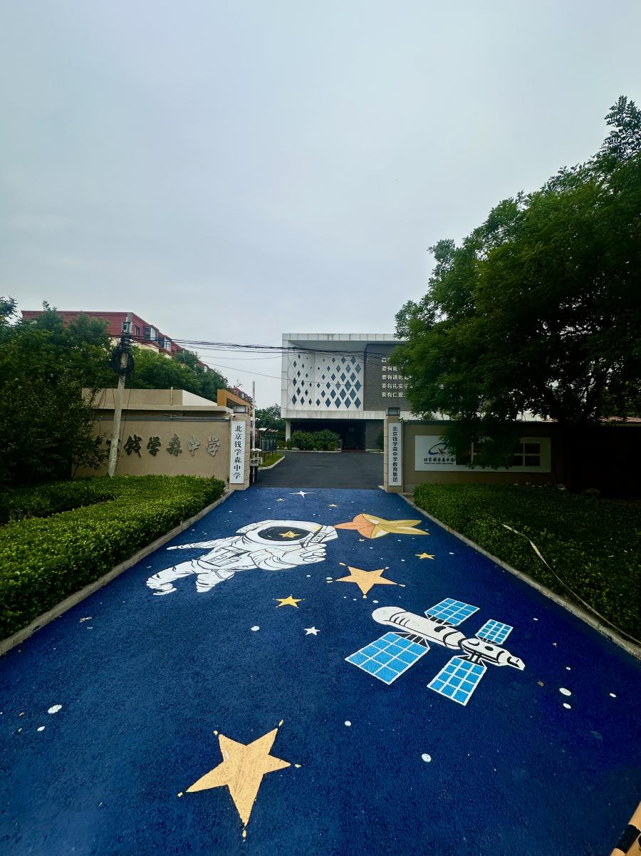 北京錢(qián)學(xué)森中學(xué)的“彩色學(xué)安路”以航天文化為主題,以學(xué)生航天日獲獎(jiǎng)作品為藍(lán)本,將科技?jí)粝搿鞍帷鄙贤▽W(xué)路,傳遞探索與安全的雙重寓意。在學(xué)校東門(mén)口的學(xué)安路上,“宇航員”在太空中遨游探索,繁星閃爍,不遠(yuǎn)處還有一個(gè)“神舟5號(hào)”,這是中國(guó)第一艘載人航天飛船,具有很重要的歷史意義。這條“彩色學(xué)安路”寓意著學(xué)校師生以中國(guó)航天精神為引領(lǐng),熱愛(ài)向上、不斷探索。