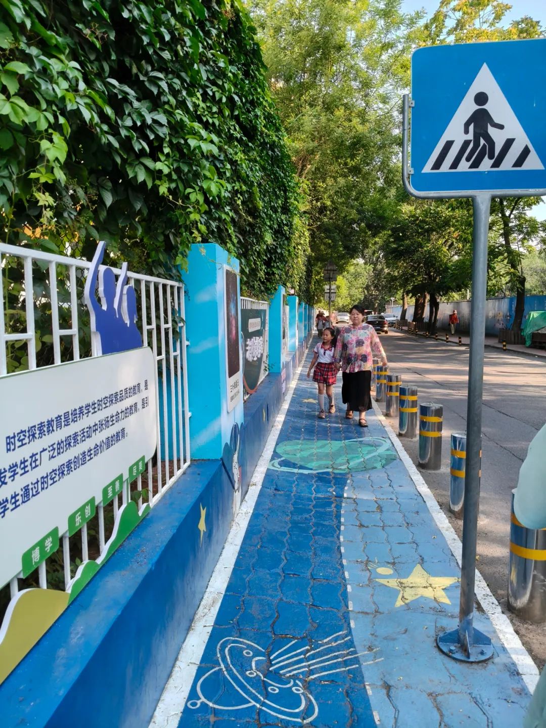 為落實北京市兒童友好城市建設要求,打造安全、溫馨的通學環境,豐臺區鼓勵全區各中小學校與交通部門、街道社區密切配合,積極探索以彩化、美化“學安路”為載體,發動師生開展創意彩繪實踐活動,繪制出展現校園文化特色、傳遞教育愛與溫情的“彩色學安路”。