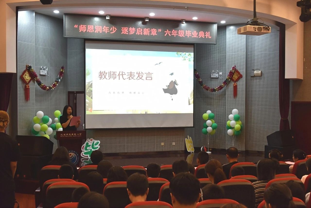 孟夏的雨絲串成晶瑩的珠簾,打濕了百子園校區(qū)的綠樹枝椏。6月19日,北京市三里屯一中百子園校區(qū)2025屆六年級畢業(yè)典禮在雨后初晴中啟幕。這場以“師恩潤年少 逐夢啟新章”為主題的盛會,如同一本裝幀精美的成長紀(jì)念冊,將兩千余個成長光影悉心收進(jìn)扉頁,在師生家長的淚光與笑靨中,鋪展成一首關(guān)于告別與啟程的詩。