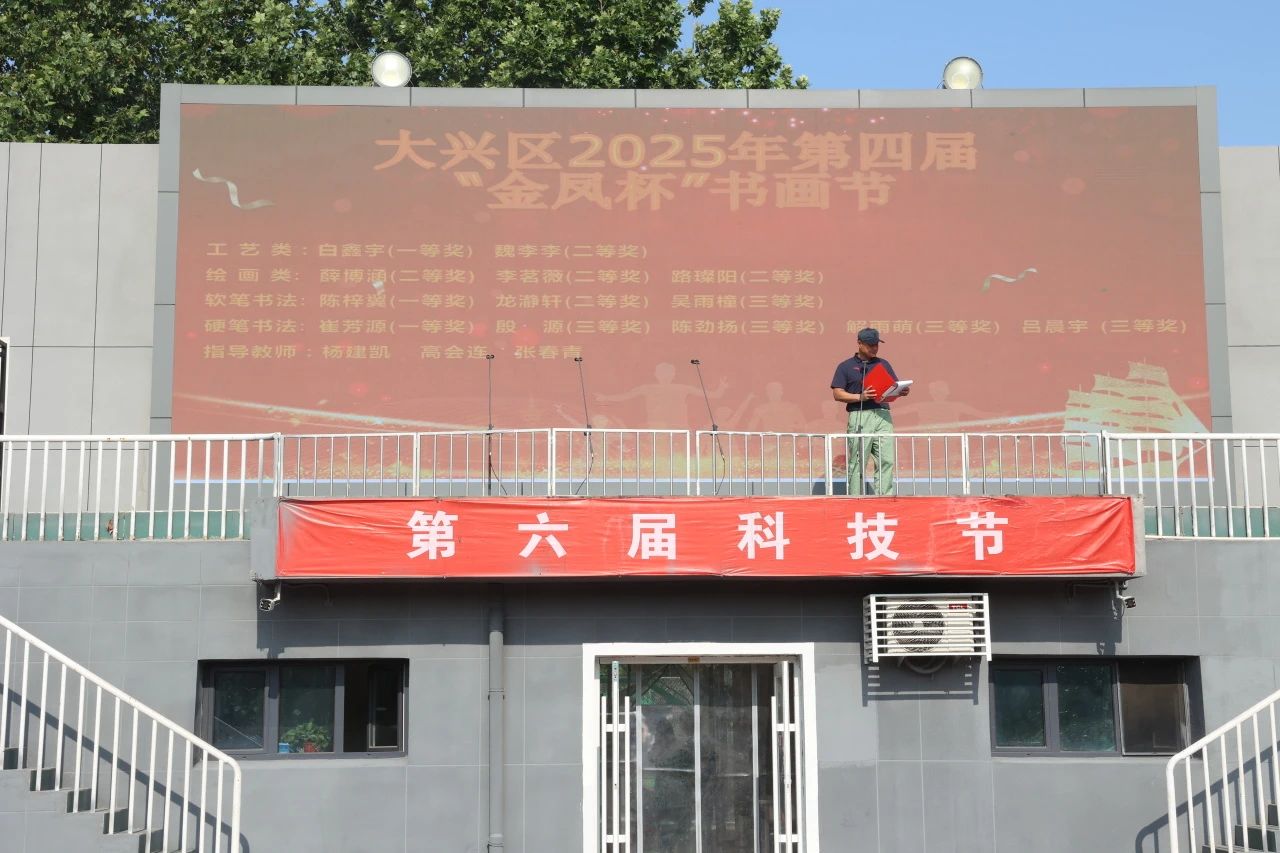 李喜洋老師宣讀大興區2025年第四屆“金鳳杯”書畫節獲獎名單,我校13名學生在工藝、繪畫、軟硬筆書法等類別中斬獲一、二、三等獎,3位指導老師獲表彰。此舉意在展現師生藝術風采與創作實力,發揮榜樣帶動作用,激發更多學生投身藝術實踐,營造濃厚校園美育氛圍,推動學校藝術教育高質量發展。