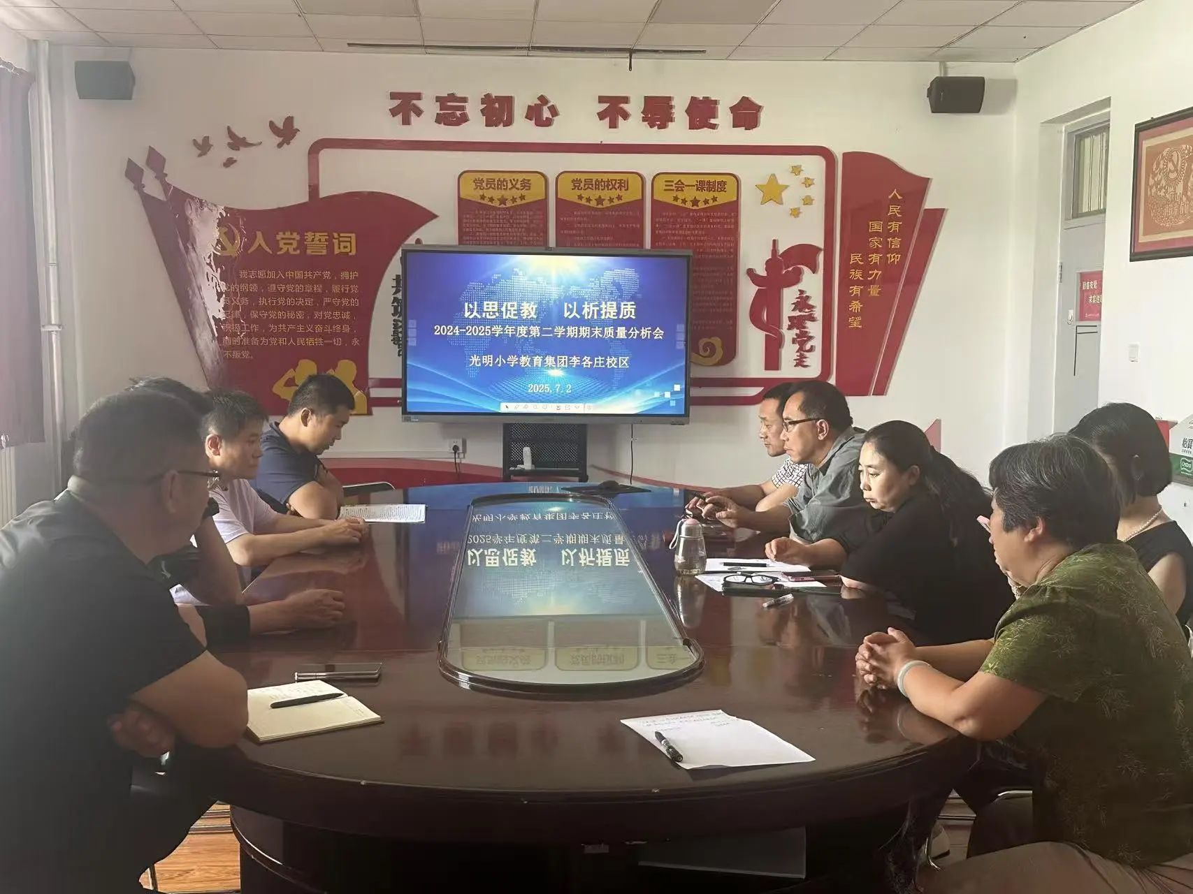 為貫徹落實立德樹人的根本任務,精準把握科學教育的發展脈搏,梳理教學得失,優化教學策略,實現教育質量持續提升,力爭新學期教育教學高質量發展,2025年7月2日,光明小學教育集團李各莊學校開展了2024-2025學年第二學期期末質量分析會。本次分析會的目的在于結合測試數據和卷面存在的問題總結經驗、發現問題、明確方向,促進學校教學質量的穩步提升。本次分析會分語數英和多科組兩場進行,兩場會議均由雒新穎主任主持。