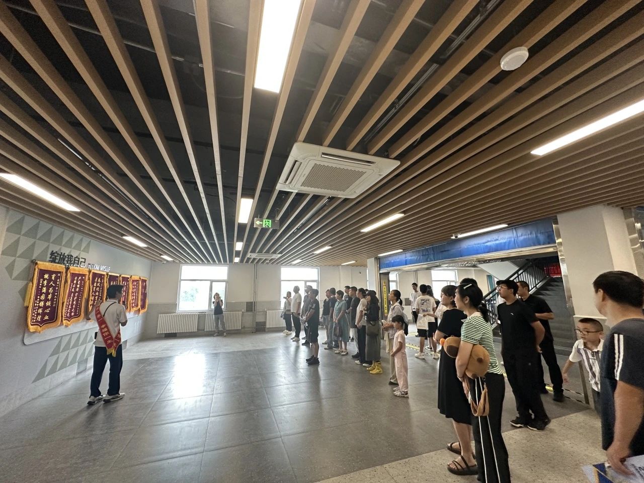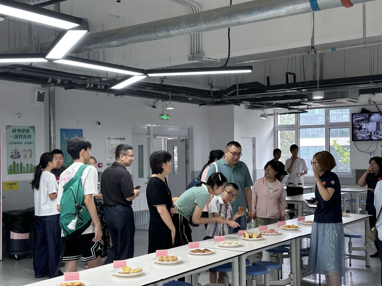 隨后,在高中年級主任于潔清老師的帶領下,家長和學生開啟了沉浸式校園深度探訪,眾人依次參觀了亭臺水系、耕讀家園、體育館、學生公寓,對于寬敞整潔、配套齊全的住宿環境,家長和學生們紛紛贊不絕口;踏入食堂,不僅親眼見證整潔衛生環境與豐富菜式品種,還能親自品嘗餐食;行至教學樓四層,家長們先瀏覽墻上的教師簡介以及高三家長們為肯定我校教育教學成果送來的錦旗,隨后一同參觀學生日常學習的教室和愛國主義教育基地。學生志愿者詳細介紹我校高中部學生管理模式和多彩活動,嚴謹有序的教學環境、豐碩的教學育人成果點燃了大家對校園生活的向往。