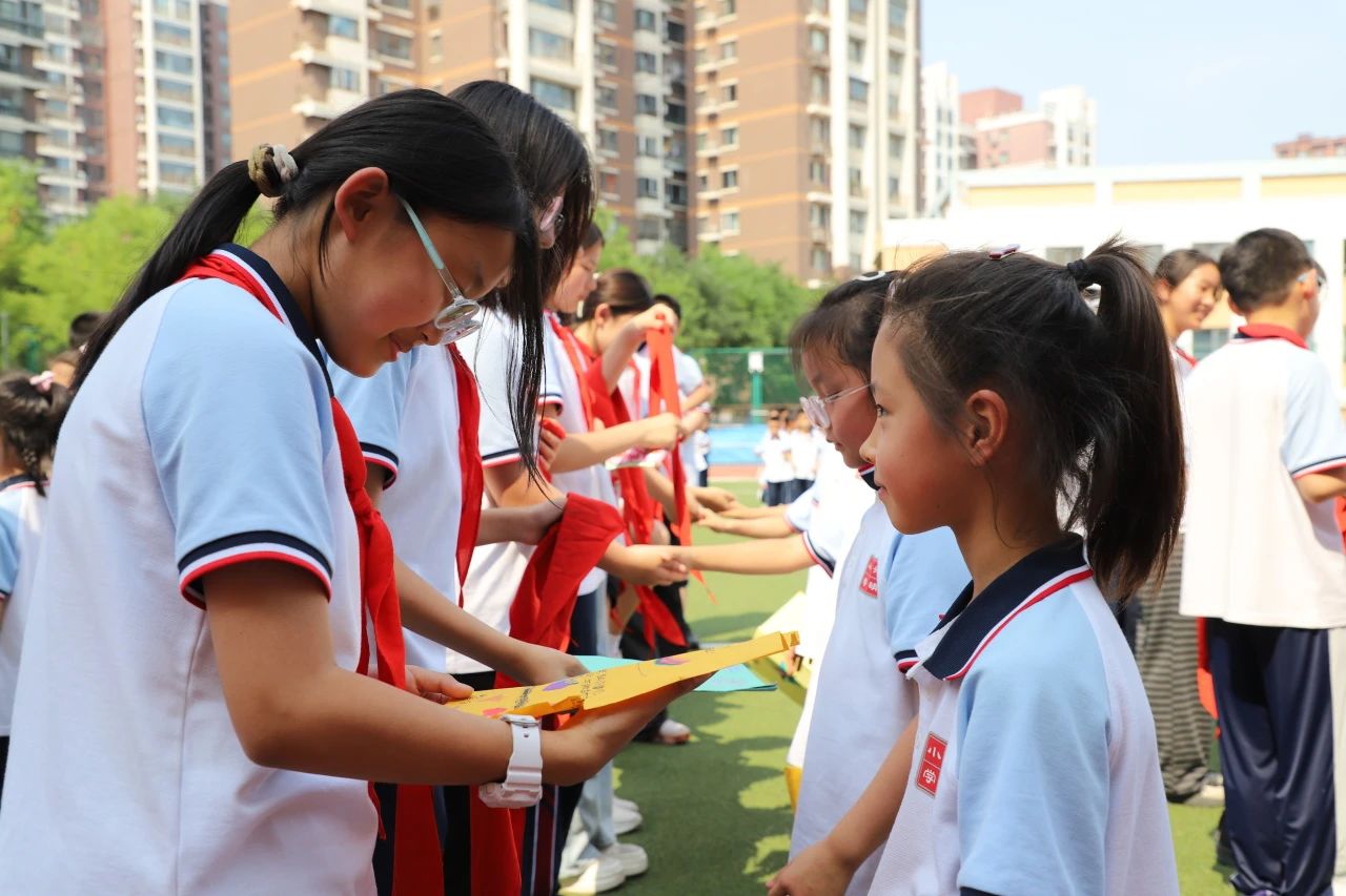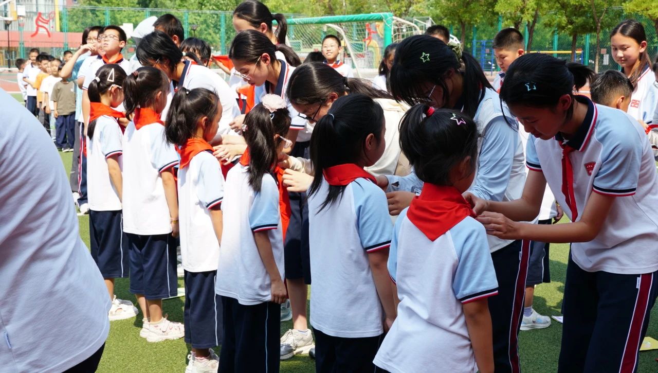 于書記的囑托如春風(fēng)化雨,既回顧六年級(jí)學(xué)子 “兩千多個(gè)日夜” 的成長(zhǎng)足跡——從入學(xué)時(shí)的好奇目光到運(yùn)動(dòng)會(huì)上的沖刺身影,再到藝術(shù)節(jié)的自信笑容;也向一年級(jí)新隊(duì)員點(diǎn)明紅領(lǐng)巾的傳承意義,“這抹紅色是責(zé)任與榮光”,寄語(yǔ)畢業(yè)與入隊(duì)都是 “新起點(diǎn)”,愿學(xué)子們“心有繁星,目向遠(yuǎn)方”。