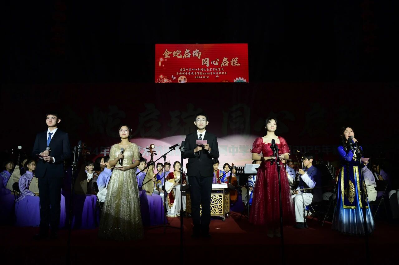 金蛇舞動,天地同新,喜氣洋洋的民樂合奏《龍騰虎躍》拉開新年聯歡會的序幕。