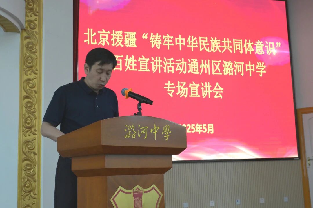 宣講活動由潞河中學黨委書記張旭東同志主持,此次活動是京疆情誼的生動體現,勉勵學生厚植家國情懷,爭做民族團結的橋梁。