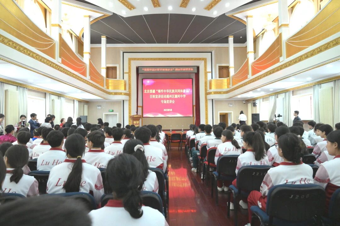 2025年5月18日,為深入貫徹落實新時代黨的教育方針,深化民族團結進步教育,北京市市委宣傳部、市委統戰部、市民宗委、市教委、市發改委、北京市援疆和田指揮部等單位聯合舉辦專場宣講會,邀請來自新疆和田的北京援疆“鑄牢中華民族共同體意識”百姓宣講團來到北京市通州區潞河中學,為新疆高中班師生開展了一場主題鮮明、內容豐富的宣講活動。