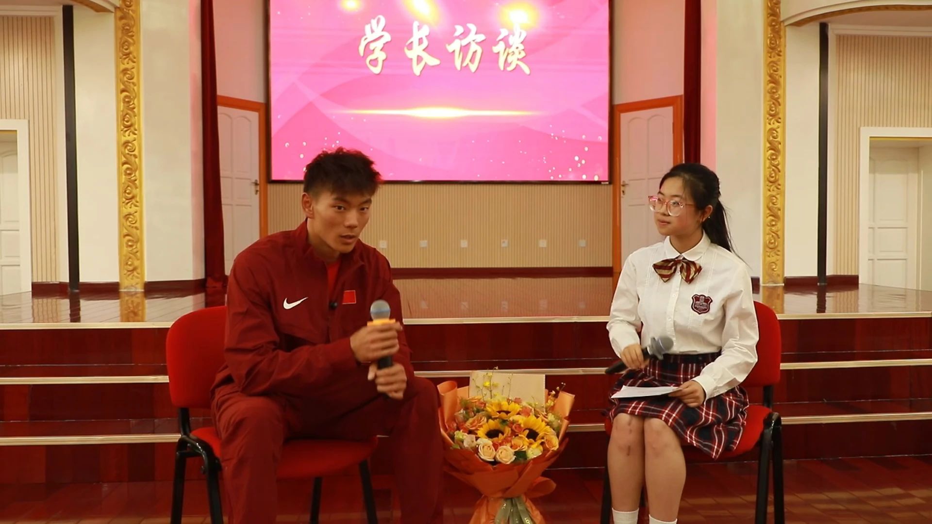 在座談會上,費翔與學弟學妹們親切互動,分享了自己從校隊訓練走向國際賽場的成長故事。他動情地說:“還記得我第一次代表學校參加通州區比賽的時候,應該已經是十年前了,當時比賽特別緊張,那時候沒想過自己能走到今天,從一個渺小的體育生成為一個專業的運動員。”他特別鼓勵體育特長生:“訓練固然艱苦,但只要敢于設定目標并堅持拼搏,每個人都有機會實現夢想。”