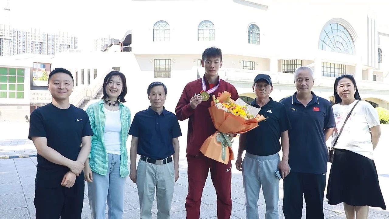 下午2時,費翔一踏入校園,便被如潮的歡呼聲包圍。學弟學妹們手持鮮花、高舉標語,以最熱烈的掌聲向這位為校爭光、為國爭光的學長表示祝賀!