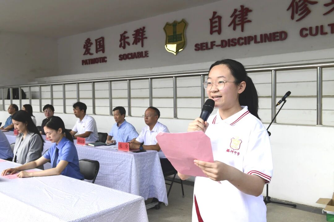 學生代表王若雯同學發(fā)言, 她表達了成為一名潞河學子的驕傲與自豪,號召同學們不僅要有潞河人應有的學習能力,健全人格,更要有潞河人的胸襟和情懷,為潞河、為祖國未來的發(fā)展增光添彩。