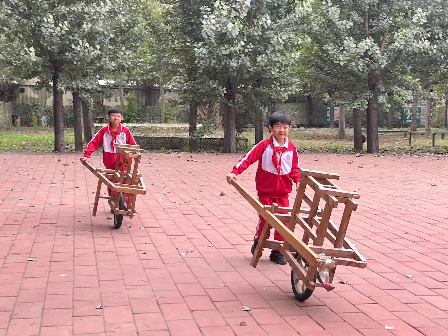 “推起小推車(chē),扛起扁擔(dān)筐”,同學(xué)們化身“戰(zhàn)地后勤兵”。看似簡(jiǎn)單的物資轉(zhuǎn)運(yùn),卻讓大家汗流浹背——崎嶇的“山路”、沉重的“物資”,每一步都走得格外艱難。親身實(shí)踐后,大家才真切懂得:抗戰(zhàn)時(shí)期,后方群眾靠著一雙雙手、一輛輛小車(chē),為前線筑起了堅(jiān)實(shí)的物資保障線。