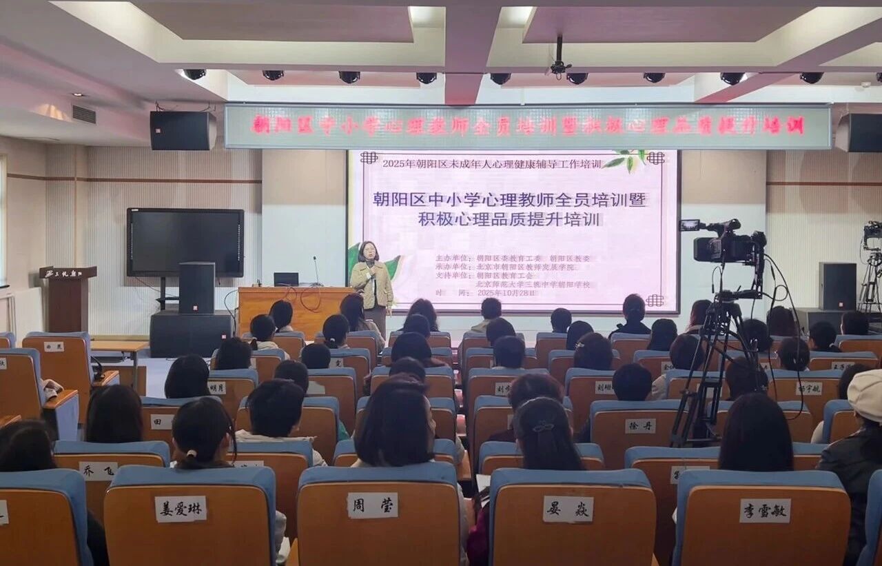 為系統(tǒng)推進(jìn)朝陽(yáng)區(qū)中小學(xué)心理健康教育內(nèi)涵發(fā)展,全面提升心理教師的專業(yè)素養(yǎng)與實(shí)踐能力,2025年10月28日,“朝陽(yáng)區(qū)中小學(xué)心理教師全員培訓(xùn)暨積極心理品質(zhì)提升項(xiàng)目”第七次培訓(xùn)在北京師范大學(xué)三帆中學(xué)朝陽(yáng)學(xué)校開展。本次培訓(xùn)邀請(qǐng)清華大學(xué)社科院社會(huì)心理服務(wù)研究中心講師、積極心理學(xué)專家劉家杰作為主講老師,以“建構(gòu)生命意義,激活成長(zhǎng)動(dòng)力——積極心理學(xué)在教育實(shí)踐中的深度應(yīng)用”為主題,引導(dǎo)教師掌握培養(yǎng)學(xué)生積極心理品質(zhì)特別是“意義感”的科學(xué)理念與實(shí)用策略,實(shí)現(xiàn)從知識(shí)傳授到心靈培育的育人升級(jí)。
